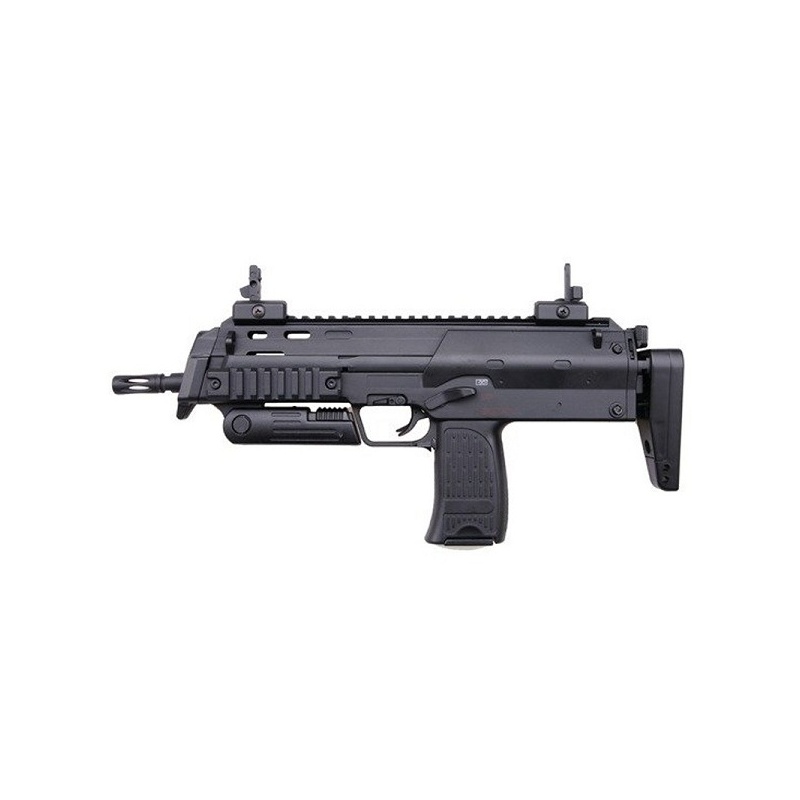 MP7A1 SMG. Colore BLACK. Guscio in fibra di nylon. Calcio allungabile. Peso: 1,360kg. Lunghezza: 38cm-59cm. Funzionamento elettrico. Tacche di mira abbattibili. Modalità di sparo: sicura - colpo singolo - raffica. 2 slitte laterali per fissaggio accessori. Tactical folding grip integrato. Outer barrel in metallo.