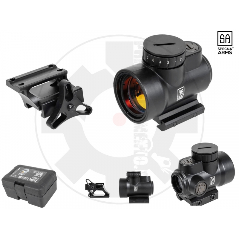 Product features: - Collimator from Specna Arms - Lightweight, compact design - 1 click = 1/2MOA - Adjustment range +-30MOA - Dot size: 2MOA - High QD/low mounting