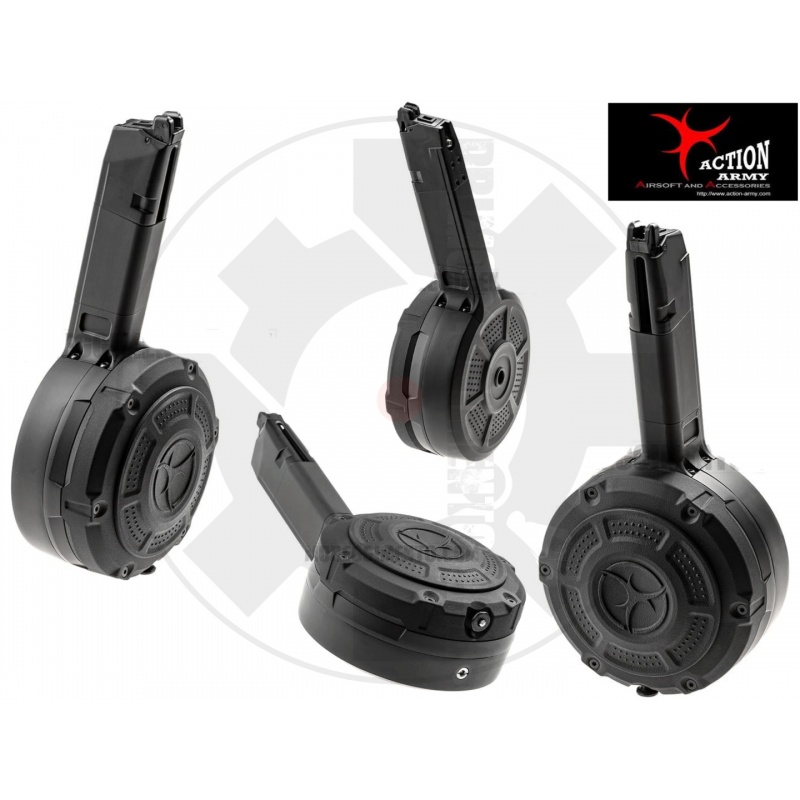Il Fast Reload Drum Mag è un caricatore a gas ad alta capacità progettato specificamente per le pistole softair Action Army AAP01 e AAP01C. Con una capacità impressionante di 350 colpi, questo caricatore consente sessioni di gioco prolungate senza la necessità di frequenti ricariche.