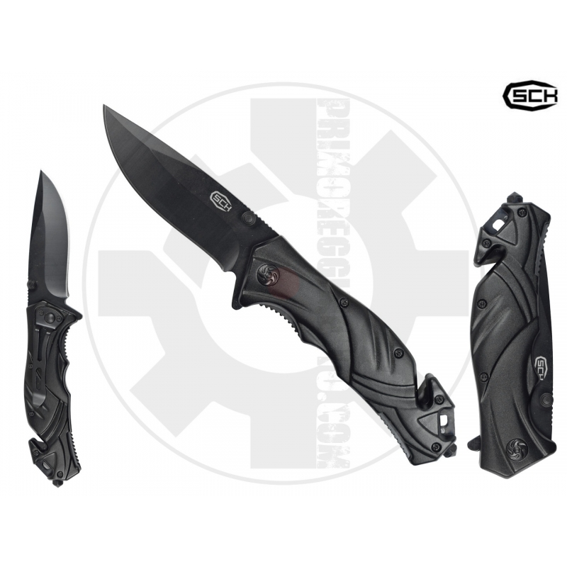 SCK Coltello Tascabile con Apertura Assistita, rompi vetro e taglia cinture (CW-222) – Lama 85 mm, Liner Lock e Clip Cintura