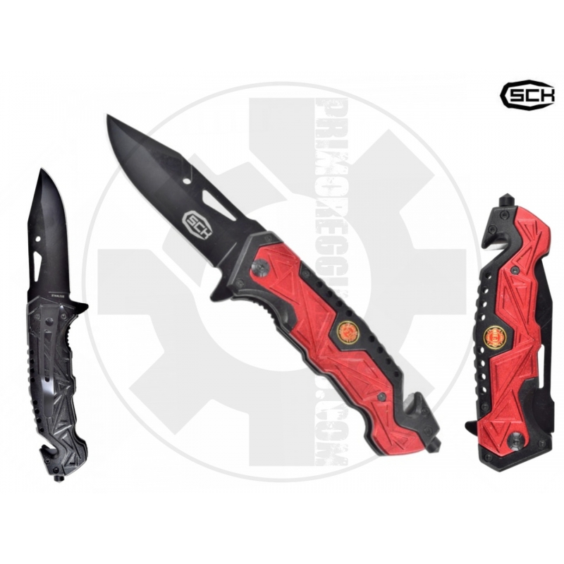 SCK Coltello Tascabile con Apertura Assistita, rompi vetri e taglia cinture (CW-031-2) – Lama Nera, Liner Lock e Clip Cintura