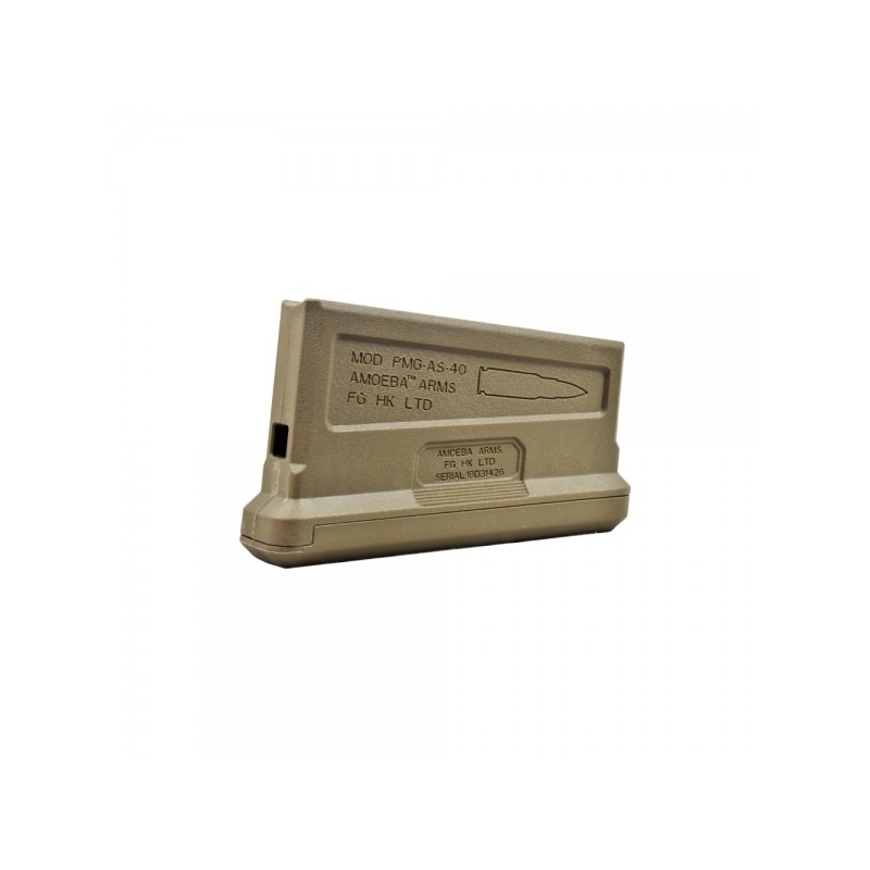 AMOEBA MAG-003 CARICATORE MONOFILARE VERSIONE SHORT 40 COLPI COMPATIBILE CON TUTTA LA SERIE AMOEBA STRIKER (AR-AS01 E AR-AS02) (AS01 with Generation 1 body is not compatible with this product ) FIBRA DI NYLON DIMENSIONI 110 x 83 x 30 mm PESO 110g COLORE TAN