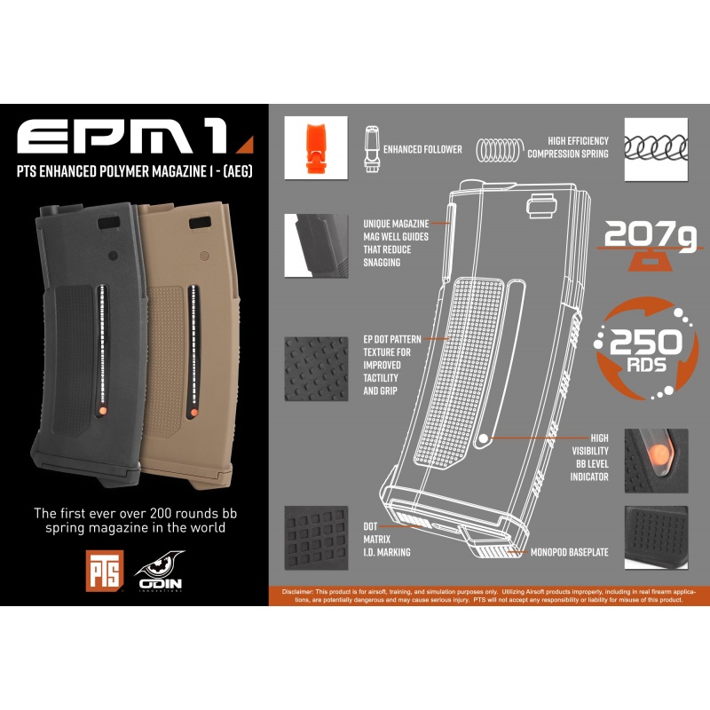 The new PTS® Enhanced Polymer Magazine ONE, or EPM1, is the highest capacity spring fed magazine ever to exist. It is truly one of a kind with its 250rnd capacity, "Fuel Gauge" window, and high rate of performance. Odin Innovations and PTS have joined forces to bring you what is arguably the best mid-cap magazine ever created.