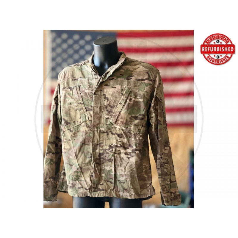 Giacca originale U.S. Army Combat Uniform in pattern OCP / MultiCam, versione flame resistant con trattamento Insect Guard. Capo militare autentico americano, come indicato chiaramente dalle etichette interne “U.S. Army” e specifiche ACU.