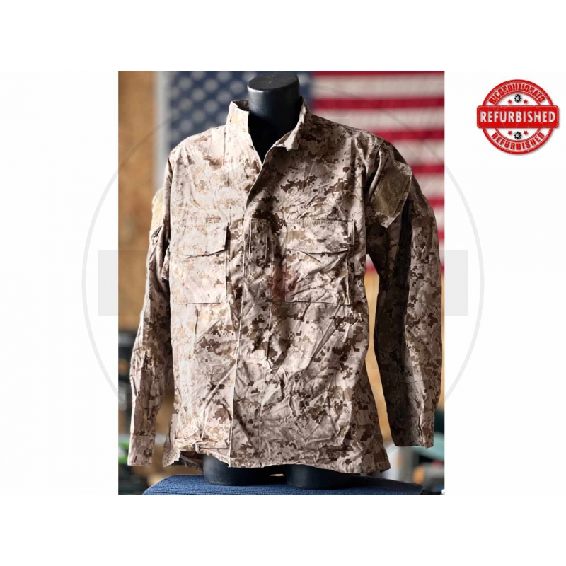 Blusa originale militare U.S. Navy in pattern desert digitale NWU Type II, comunemente associato all’AOR1. Non si tratta quindi di una Desert MARPAT dei Marines: i due pattern sono molto simili, ma questo capo è chiaramente riconducibile alla Navy. Modello operativo moderno in ripstop, con pannelli velcro per patch e grado. Questo esemplare è letteralmente come nuovo, molto pulito e davvero ben conservato