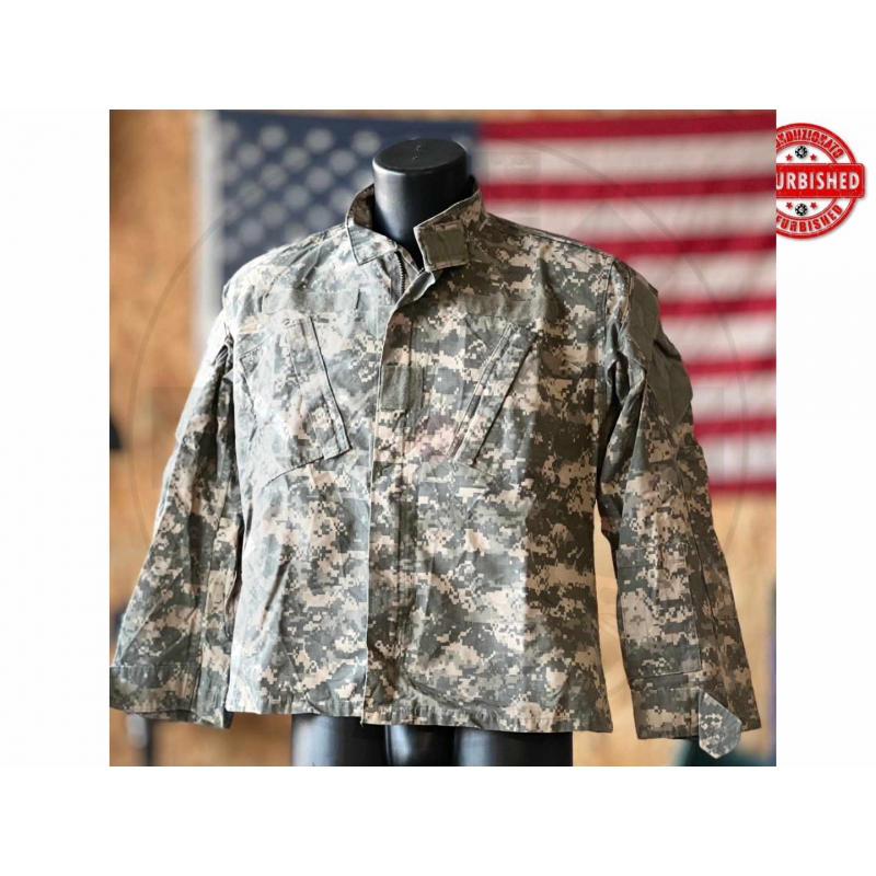 * originale militare U.S. Army * modello: Coat, Army Combat Uniform * pattern: UCP / ACU digital * taglia etichetta: Small X-Short * taglia pratica: circa S molto corta * chiusura anteriore con zip e velcro * NSN: 8415-01-526-0512 * trattamento aggiuntivo: Perimeter Insect Guard / insect repellent apparel * principio attivo indicato in etichetta: permethrin * contractor trattamento: Pinebelt Processing Co. * etichetta tecnica anti-insetto presente * condizioni: in buone condizioni generali, con normali segni d’uso