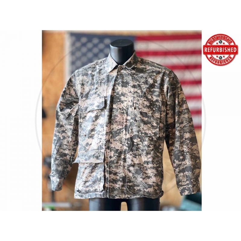 * commerciale / outdoor * brand: Rothco * linea: Ultra Force B.D.U. * modello riconducibile a giacca stile ACU * pattern UCP digitale * taglia etichetta: Small Regular * stock number: 1227-0429-KP-0704 * materiali: 55% cotone / 45% poliestere * chiusura anteriore con bottoni * tasche frontali con pattina e bottoni * non originale militare USA * condizioni: in buone condizioni generali, con normali segni d’uso