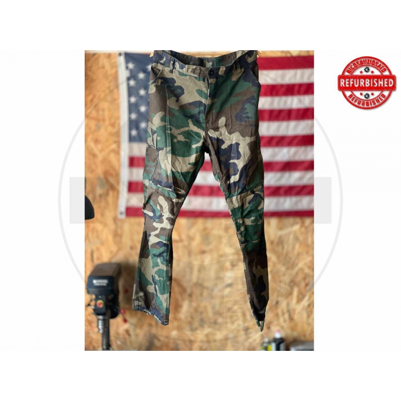 * commerciale / outdoor * brand: Rothco * modello: Rothco B.D.U. * pattern: woodland * taglia etichetta: X-Small Regular * taglia pratica: Small Regular * vita: 23 in. to 27 in. * inseam: 29 1/2 to 32 1/2 in. * stock number: 11227-3429-MP-0704 * materiali: 55% cotton / 45% polyester * made in: China * chiusura anteriore con zip e bottone * condizioni: in buone condizioni generali, con normali segni d’uso