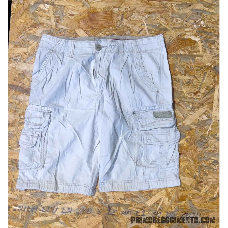 Commerciale / utility Brand: Unionbay Colore: bianco Taglia in etichetta: 32 Conversione indicativa: circa M Vestibilità indicativa: regolare Chiusura: zip frontale con bottone Tasche: 2 tasche laterali, multiple tasche cargo con patta e bottone, 2 tasche posteriori applicate con patta Materiale: 100% cotone Dettagli utili: passanti per cintura, linea cargo strutturata, lunghezza generosa, look casual utility molto estivo Condizioni: in ottime condizioni generali, con normali segni d’uso e pieghe da stoccaggio