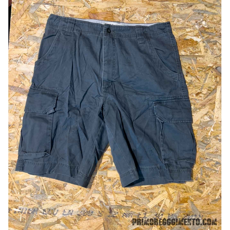 Categoria: bermuda cargo civile / commerciale Taglia in etichetta: 33 Conversione indicativa: circa M abbondante Vestibilità indicativa: regolare Materiale: 100% cotone Paese di produzione: Made in Bahrain Colore: grigio Chiusura: zip con bottone Tasche: 2 laterali, 2 cargo laterali Dettagli utili: passanti per cintura, impostazione utility estiva, taglio comodo