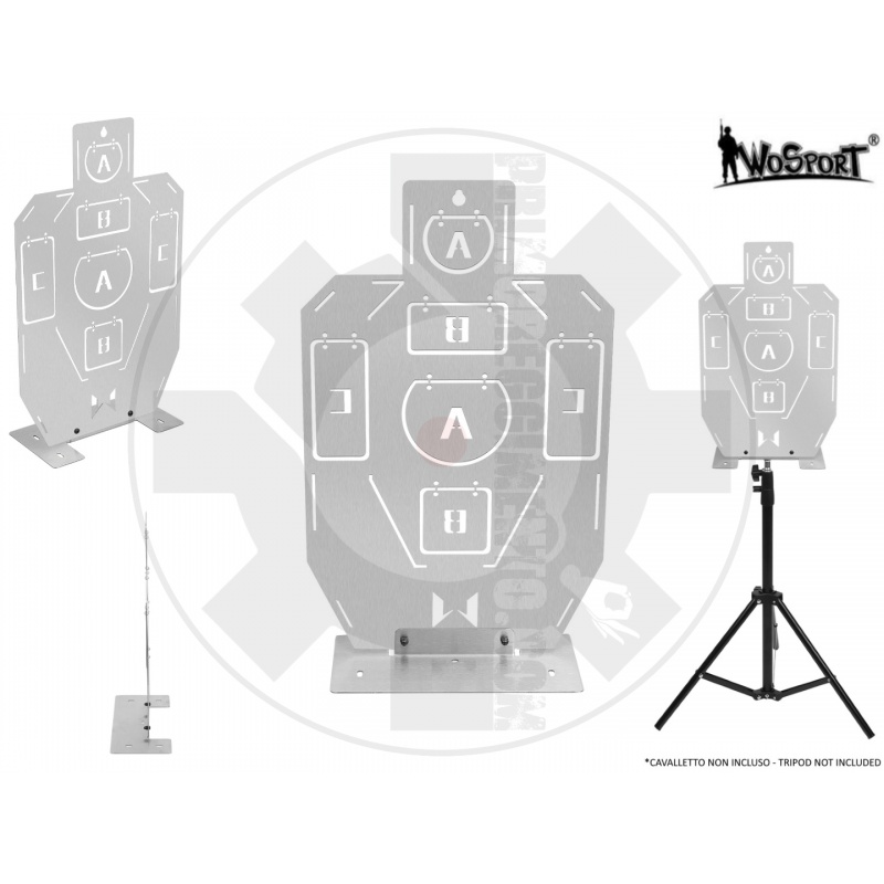 WST SHOOTING TRAINING METAL TARGET BERSAGLIO IN ACCIAIO INOSSIDABILE 304 I BERSAGLI A LETTERA QUANDO COLPITI RIVERBERANO E OSCILLANO BASE RIMOVIBILE PUO' ESSERE POSIZIONATO IN DIVERSI MODI: - FISSATO AL SUOLO (VITI NON INCLUSE) - APPESO SENZA BASE (CAVI NON INCLUSI) - UTILIZZATO SENZA BASE SU APPOSITO CAVALLETTO WO-TGACC02 (NON INCLUSO) DIMENSIONI 410mm x 253mm WEIGHT 920g