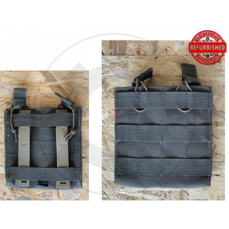 Holds two 30 round 5.56 AR15/M16 magazines in flat configuration. Open top design with bungee retention and side drain holes. Attaches to modular webbing with 2 long MALICE CLIPS® (included).
