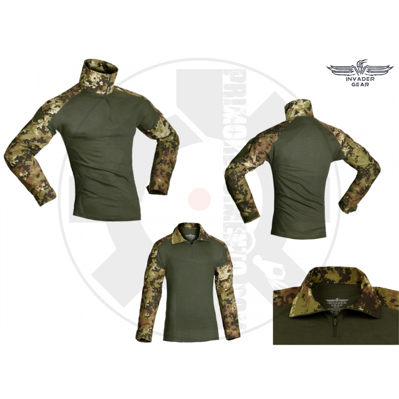 Combat shirt Colore: Vegetato Maniche con tasca a velcro Polsini regolabili Parte pettorale e dorsale elasticizzata Inserti per gomitiere (non incluse) Prodotto di altissima qualità.