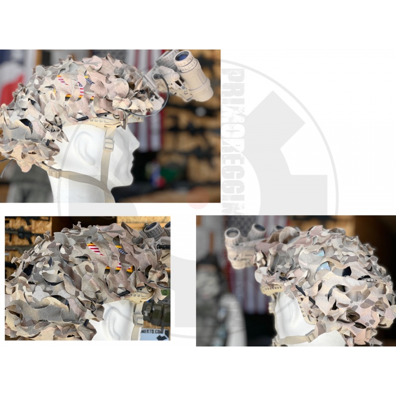 Copertura per elmetto in rete forata camo con retention bungee e clip di regolazione