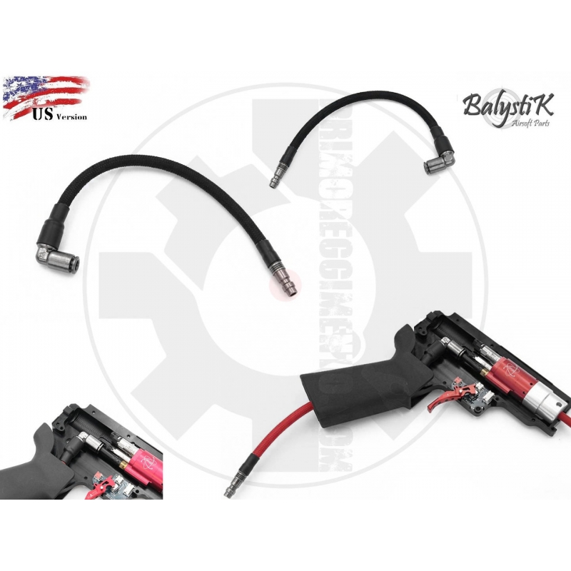 The Balystik braided HPA line is an original solution for replacing the original macro line of the HPA replicas. Easy to install, it is specially designed to be clipped directly behind your HPA drop-in system and exit under your pistol grip. Thanks to its integrated elbow, it allows direct alignment in the direction of the grip and avoid risk of bending. The braided finish offers much better resistance and additional touch of style for your HPA gun.