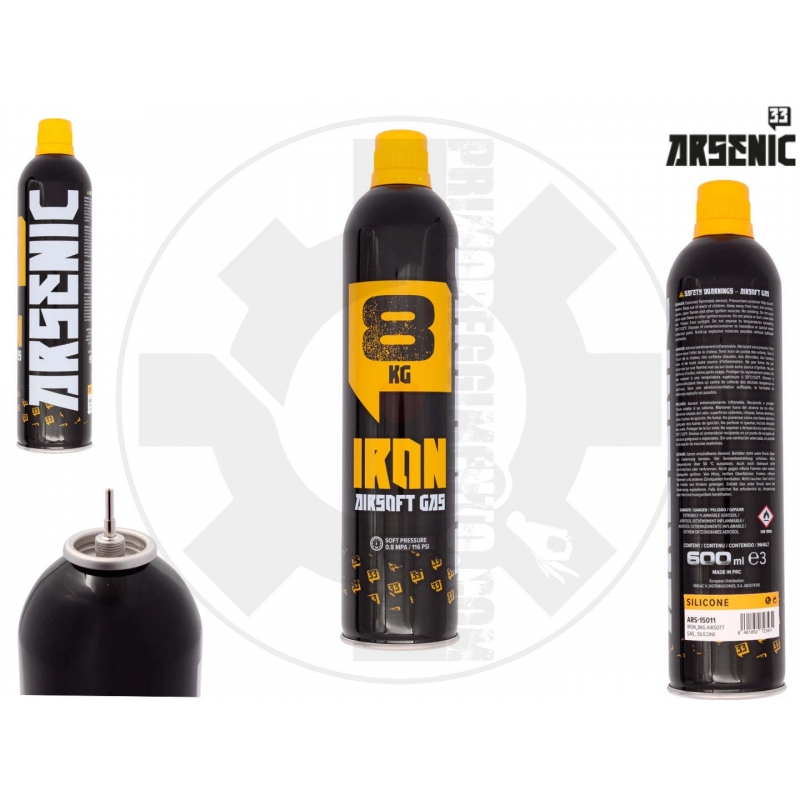 Il Gas Arsenic Iron 8 kg è specificamente progettato per climi caldi, rappresentando un’ottima alternativa per pistole con carrello in polimero e per fucili GBB con componenti delicati.