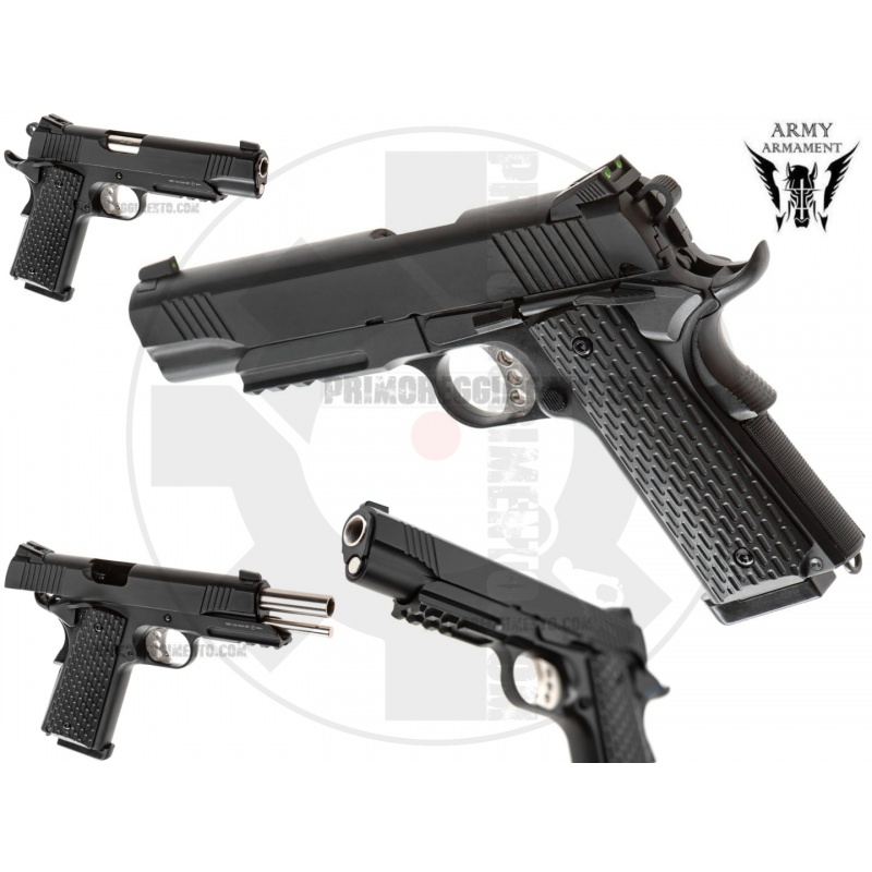 Solid and high-quality item offers primarily metal external construction. Only grip panels are injection molded from polymers. On the inside, Army Armament provided quality parts that ensure long time usage and precision of each shot.