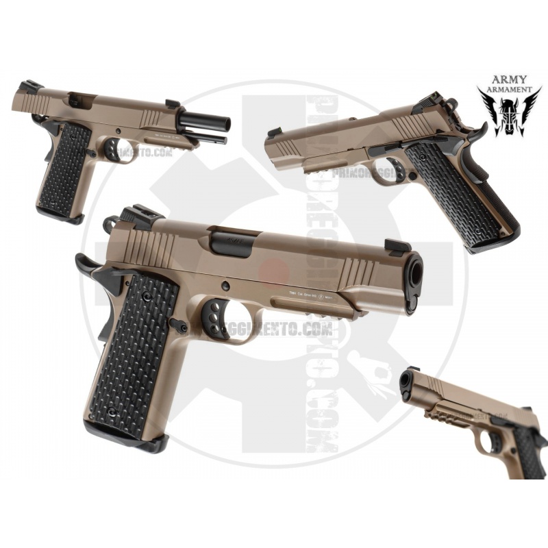 Solid and high-quality item offers primarily metal external construction. Only grip panels are injection molded from polymers. On the inside, Army Armament provided quality parts that ensure long time usage and precision of each shot.