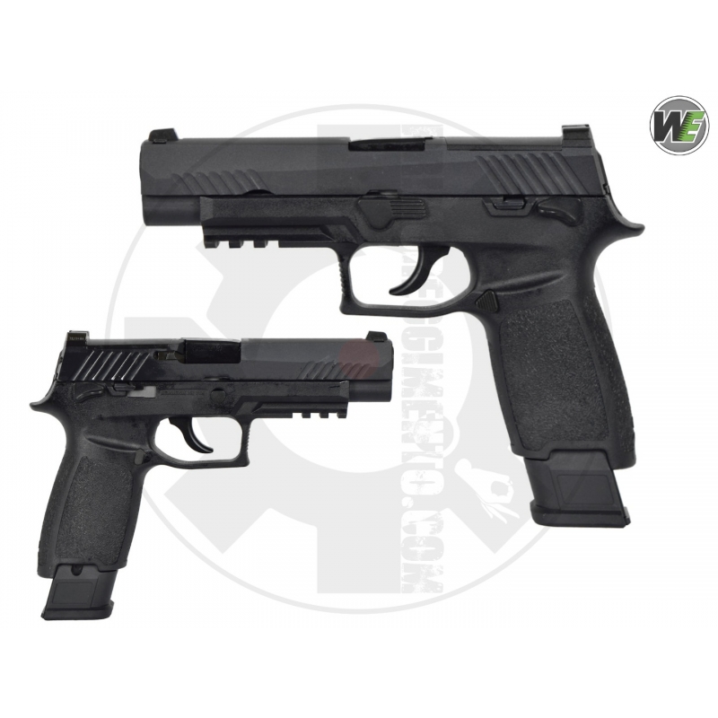 PISTOLA A GAS SCARRELLANTE PISTOLA REALIZZATA DA WE CARRELLO IN METALLO, CORPO IN POLIMERO CARICATORE 25 COLPI IN METALLO SLITTA SOTTO CANNA STANDARD 20mm IMPUGNATURA ANTISCIVOLO HOP UP REGOLABILE MODALITÀ DI SPARO: SICURO, SEMI-AUTO LUNGHEZZA 205mm PESO 815g