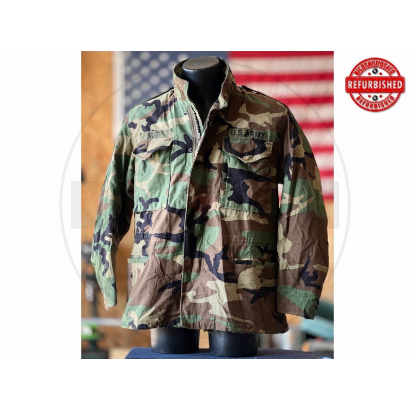 * originale militare U.S. Army * modello: Coat, Cold Weather, Field, Woodland Camouflage Pattern * pattern Woodland * taglia etichetta: Medium Short * NATO size: 6070/9404 * stock number: 8415-01-099-7834 * contract number: DLA100-93-D-0456 * produttore: American Apparel, Inc. * materiali: tessuto esterno 50% cotton / 50% nylon * fodera: 100% cotton * chiusura anteriore con zip e bottoni a pressione * dettagli presenti: name tape MASTY, branch tape U.S. ARMY, spalline, cappuccio nel colletto con zip * periodo indicativo: anni '90 * condizioni: in buone/ottime condizioni generali, con normali segni d’uso