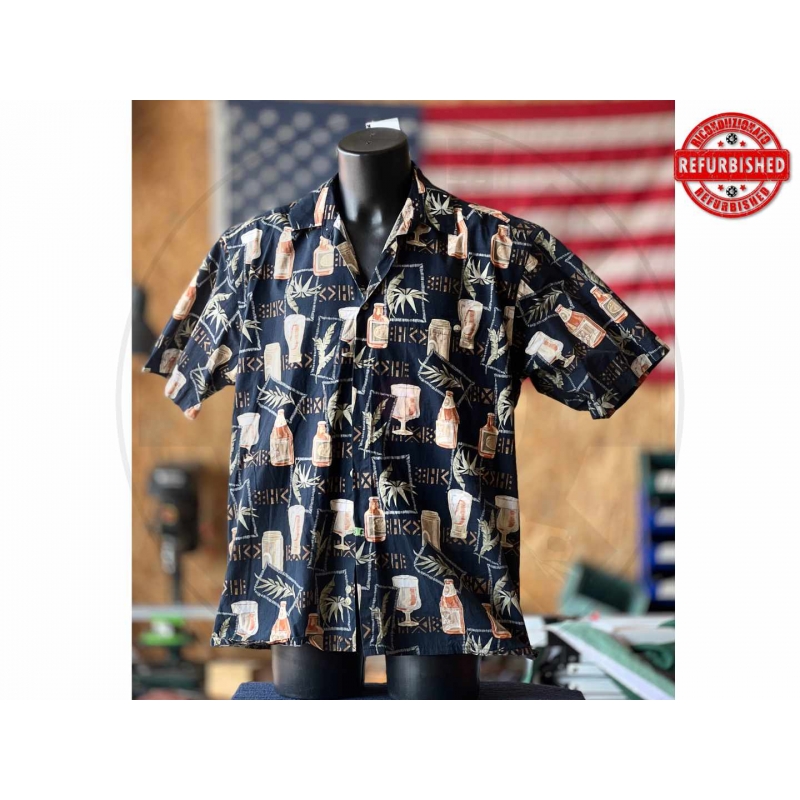 * commerciale * brand Back Bay * fantasia cocktail / bottiglie * taglia etichetta L * chiusura frontale con bottoni * taschino sul petto * materiale: 100% cotone * Made in Korea * etichetta: “Made in Korea, see other side for care” * Condizioni: In ottime condizioni generali, con piccoli segni d’uso