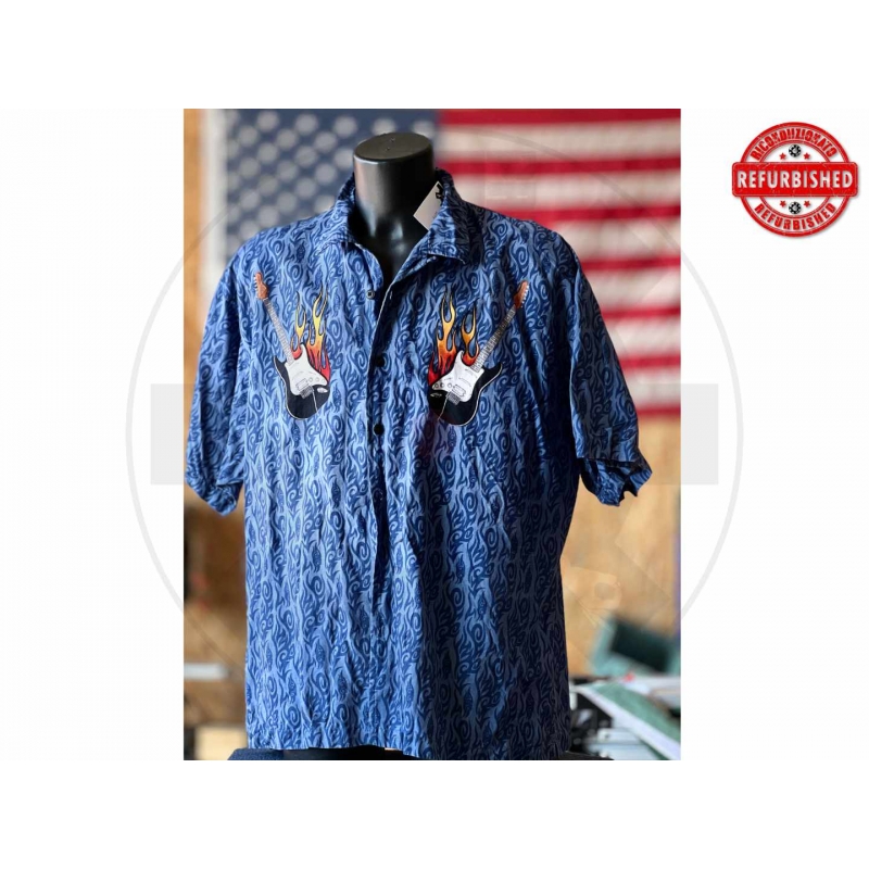 Camicia hawaiana chitarre fiamme blu 2XL USATO