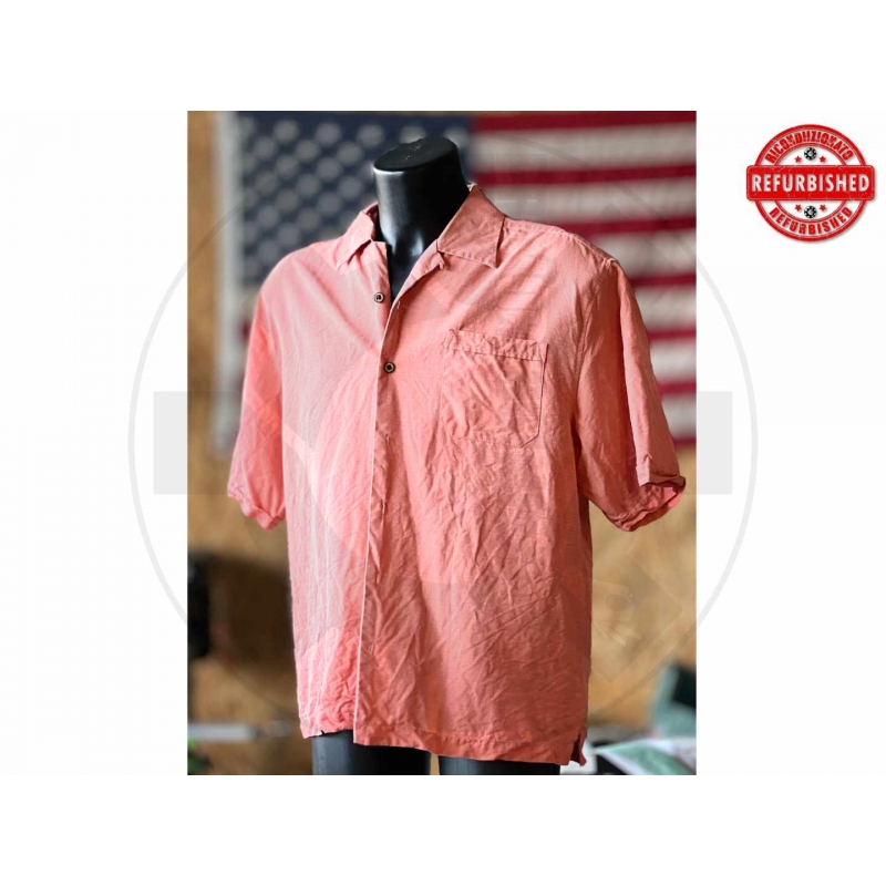 Camicia hawaiana commerciale Jamaica Jaxx in tinta unita corallo, molto pulita e più particolare del solito proprio per l’assenza di fantasia. È un capo facile da portare, con look estivo elegante e rilassato, adatto sia al tempo libero sia a un uso più curato.