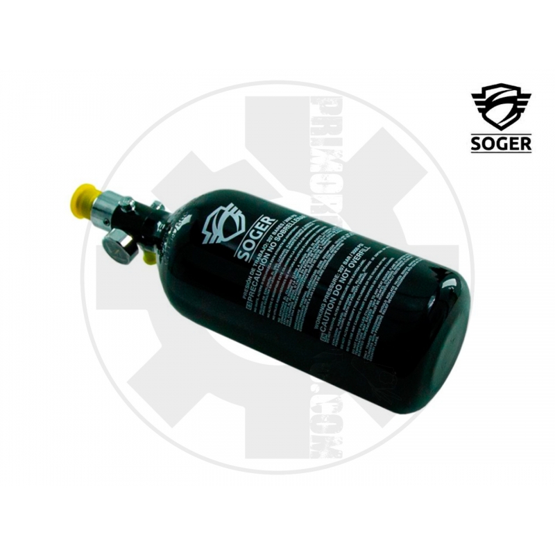 Specifiche tecniche: • Marca: Soger • Materiale: Alluminio • Capacità: 48CI / 0.8L • Pressione massima: 3000 PSI (207 bar) • Filettatura: Standard CGA 320 (compatibile con regolatori HPA) • Peso: Leggera e bilanciata per un trasporto comodo • Colore: Nero opaco