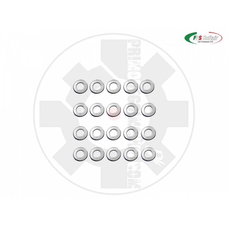 Set da 20 pezzi di spessori da 0.20 mm per ingranaggi. L'utilizzo di questi anelli di rasamento garantisce una spessorazione ottimale per un lunghissimo periodo di tempo. Materiale utilizzato: acciaio ST 2 K60 Diametro foro: 3 mm Diametro esterno: 6 mm Spessore: 0.20 mm 100% MARUI COMPATIBILE 100% MADE IN ITALY