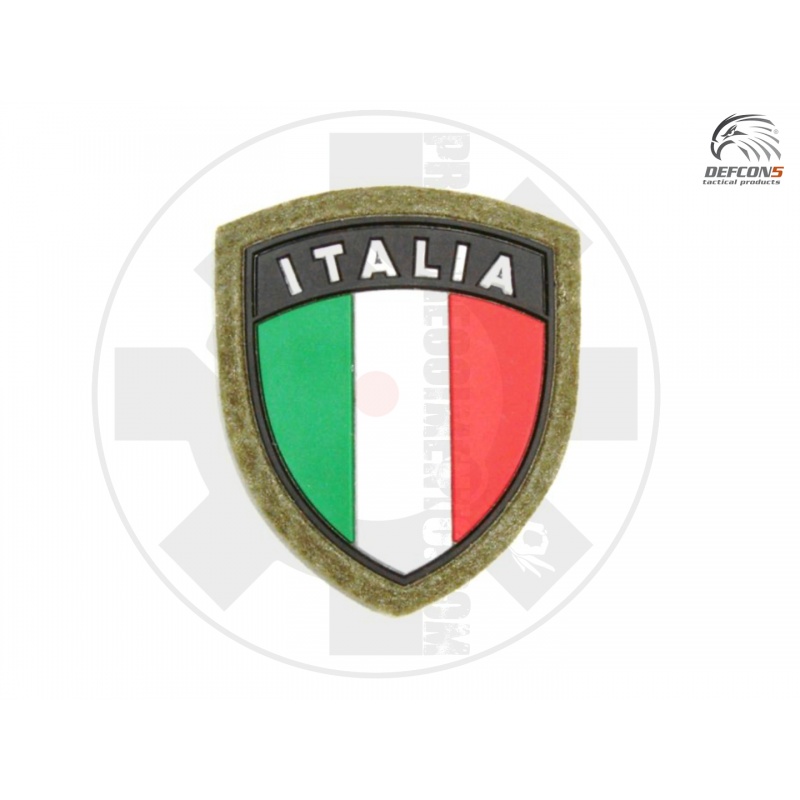SCUDETTO ITALIA IN GOMMA CON SFONDO VERDE MILITARE