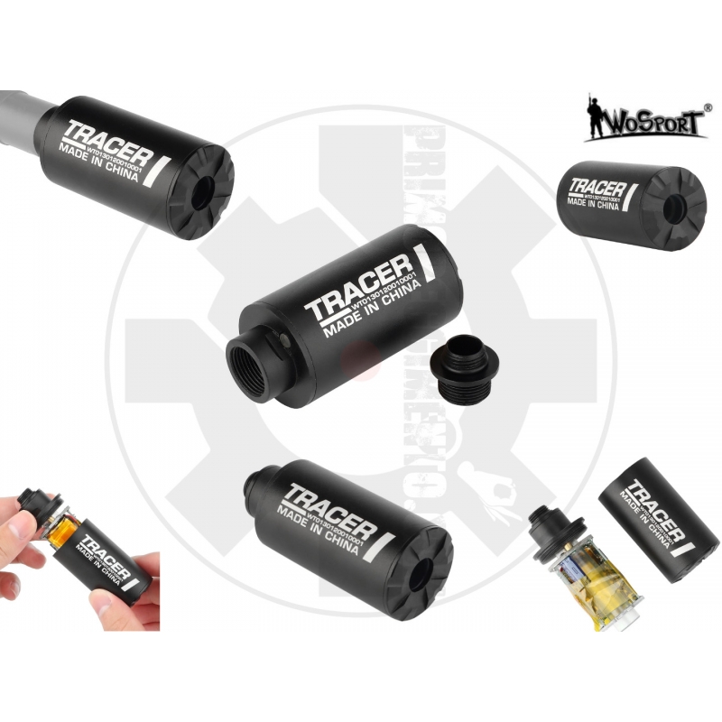 UNITA' TRACCIANTE TRACER I ADATTO A FUCILI CON FILETTO 14mm ANTIORARIO INCLUDE ADATTATORE PER PISTOLE CON FILETTO 11mm ORARIO IN LEGA DI ALLUMINIO POTENZA 5W ACCENSIONE E SPEGNIMENTO AUTOMATICI CAVO DI RICARICA USB INCLUSO BATTERIA AL LITIO BUILT-IN 3.7V 250mAh PESO 60g DIAMETRO FINALE 29mm LUNGHEZZA 70mm (CON ADATTATORE PER FILETTI 11mm) COLORE NERO