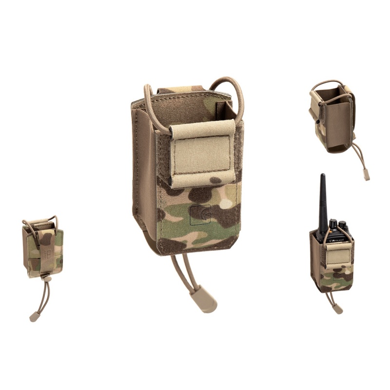 The Small Radio pouch due to its elastic design will fit most small radios. The radio is securely kept in place by a fast detachable bungee retention.