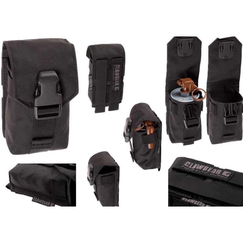 - Designed for standard sized smoke grenades - Made of 500D Nylon - Plastic buckle opening/closure - MOLLE system compatible - Ambidextrous safety lever locking loops