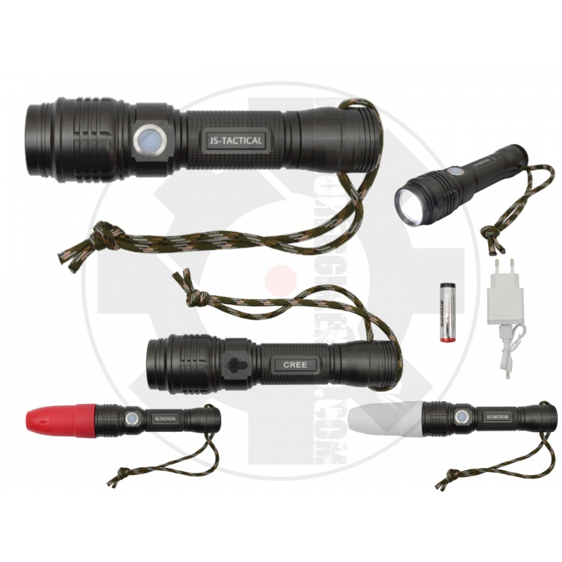 In dotazione: - batteria 18650 Li-Ion da 2200mAh - cono bianco di segnalazione installabile sulla parte frontale - cono rosso di segnalazione installabile sulla parte frontale - alimentatore USB con cavo USB-C per la ricarica